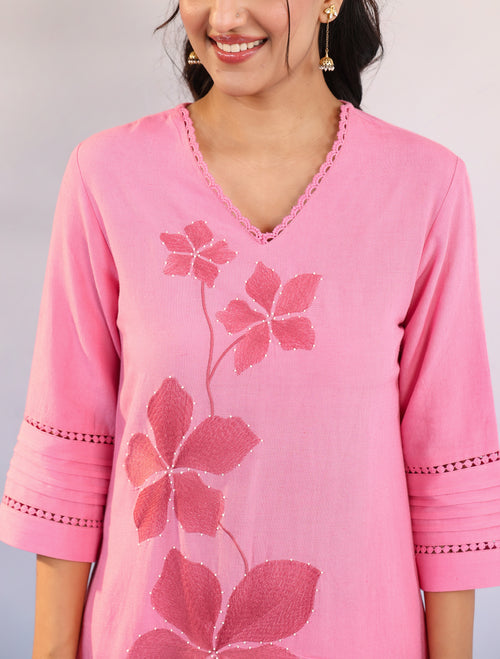 Blush Petal Embroidered Kurta Co-ord Set