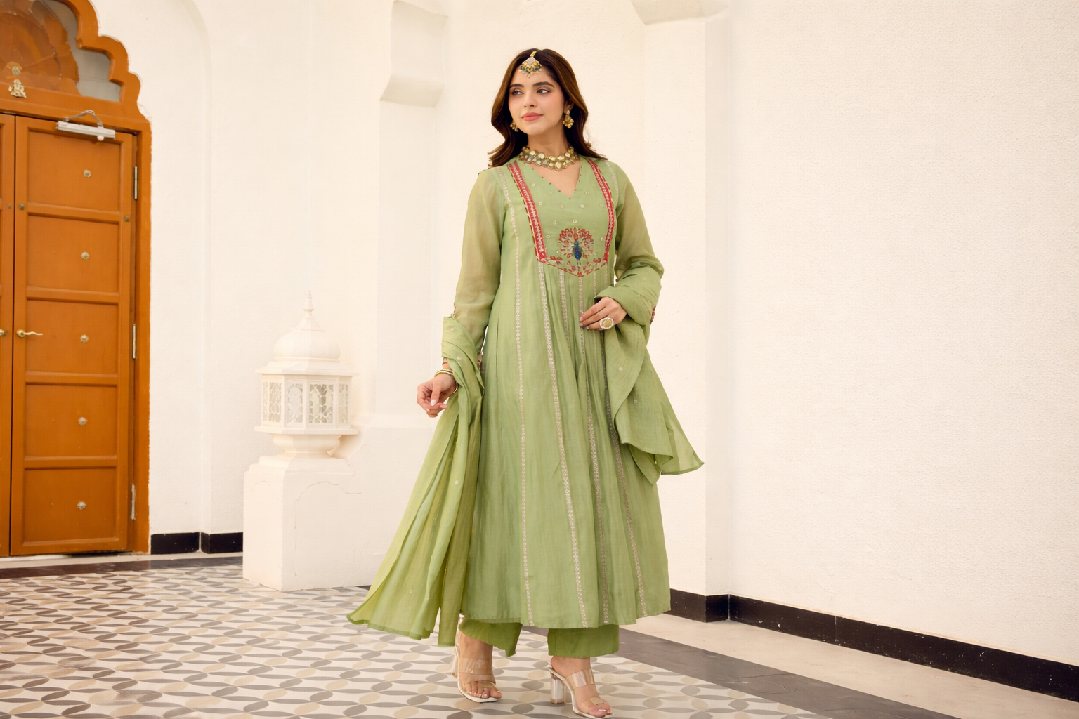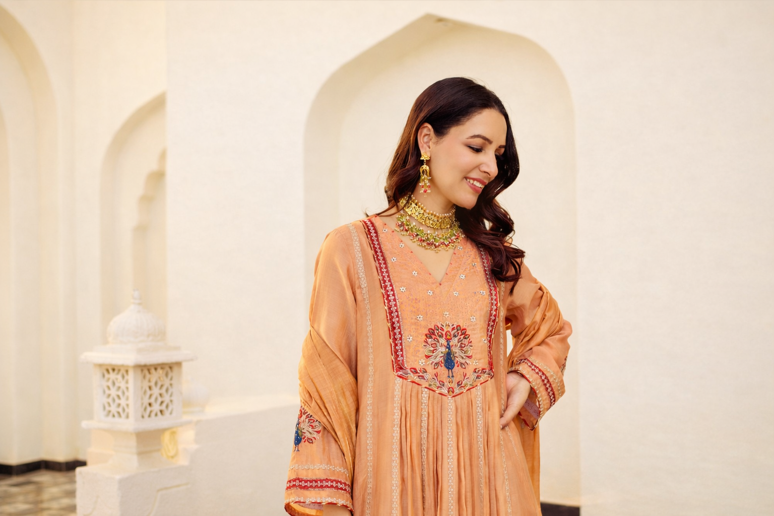Peach Royale Embroidered Anarkali Suit Set